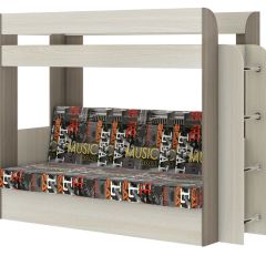 Кровать 2-х ярусная с диваном Карамель 75 (Музыка) Ясень шимо светлый/темный | фото