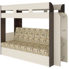 Кровать 2-х ярусная с диваном Карамель 75 (Газета) Анкор светлый/Бодега