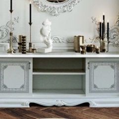 Для создания оригинального интерьера подходят наборы в необычном исполнении, с применением блестящих и прозрачных поверхностей, фотопечатью, резьбой.